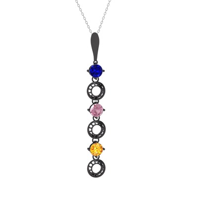 Lab safir, pembe kuvars ve sitrin 925 ayar siyah rodyum kaplama gümüş kolye (40 cm beyaz altın rolo zincir)