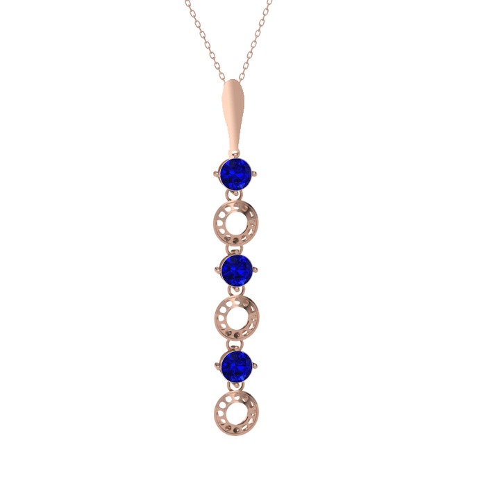 Lab safir 925 ayar rose altın kaplama gümüş kolye (40 cm rose altın rolo zincir)