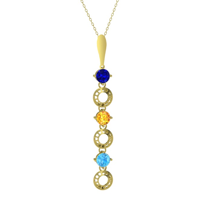 Lab safir, sitrin ve akuamarin 8 ayar altın kolye (40 cm altın rolo zincir)