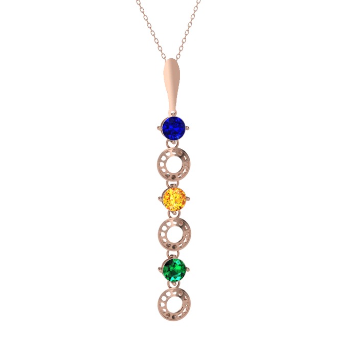 Lab safir, sitrin ve yeşil kuvars 8 ayar rose altın kolye (40 cm rose altın rolo zincir)