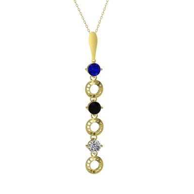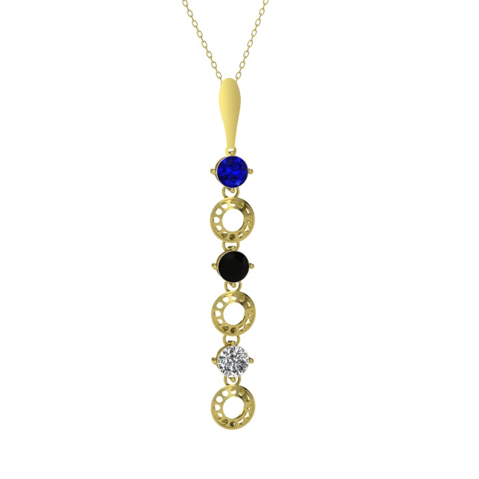 Lab safir, siyah zirkon ve beyaz zirkon 925 ayar altın kaplama gümüş kolye (40 cm altın rolo zincir)