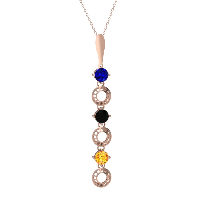 Lab safir, siyah zirkon ve sitrin 8 ayar rose altın kolye (40 cm rose altın rolo zincir)
