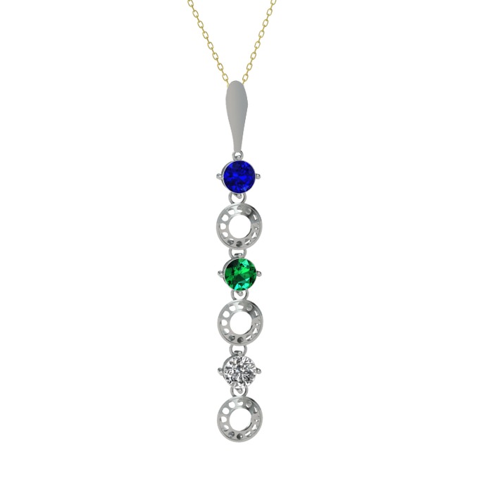 Lab safir, yeşil kuvars ve beyaz zirkon 925 ayar gümüş kolye (40 cm altın rolo zincir)