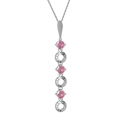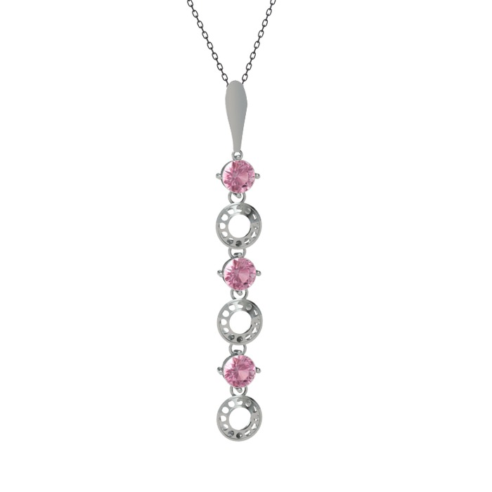 Pembe kuvars 14 ayar beyaz altın kolye (40 cm gümüş rolo zincir)