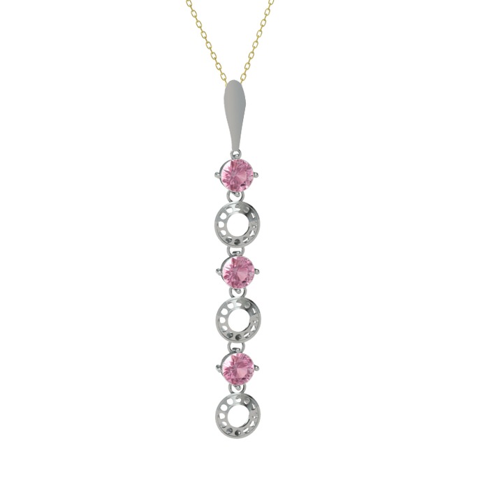 Pembe kuvars 14 ayar beyaz altın kolye (40 cm gümüş rolo zincir)