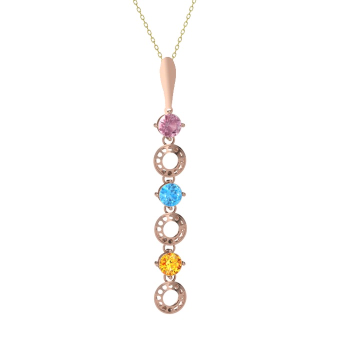 Pembe kuvars, akuamarin ve sitrin 8 ayar rose altın kolye (40 cm altın rolo zincir)