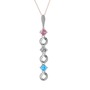 Pembe kuvars, beyaz zirkon ve akuamarin 14 ayar beyaz altın kolye (40 cm rose altın rolo zincir)