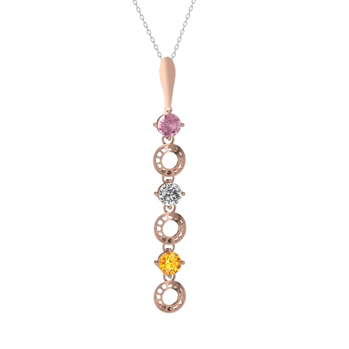 Pembe kuvars, beyaz zirkon ve sitrin 8 ayar rose altın kolye (40 cm gümüş rolo zincir)