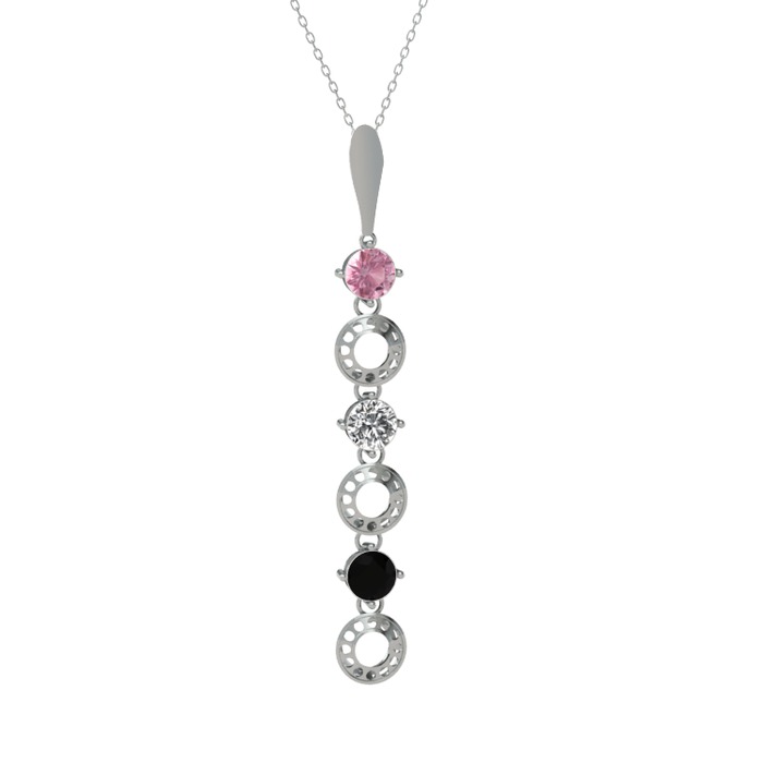 Pembe kuvars, beyaz zirkon ve siyah zirkon 14 ayar beyaz altın kolye (40 cm beyaz altın rolo zincir)