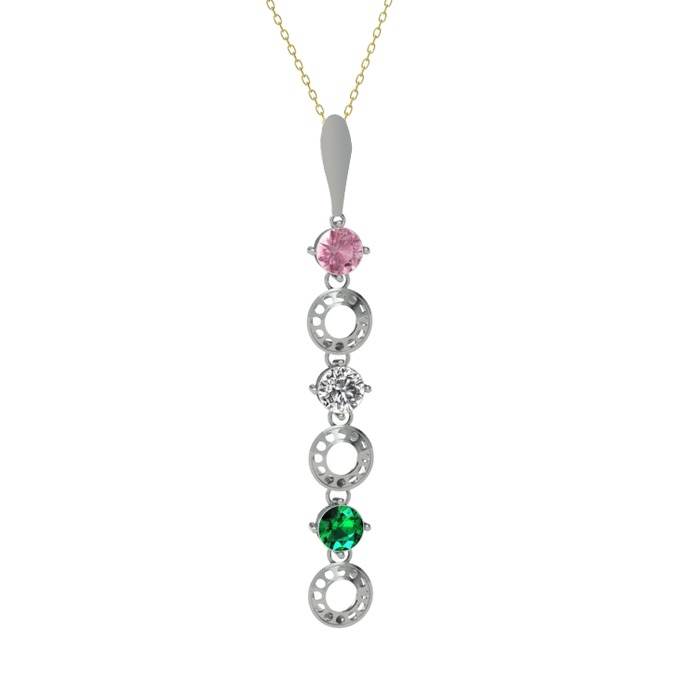 Pembe kuvars, beyaz zirkon ve yeşil kuvars 8 ayar beyaz altın kolye (40 cm altın rolo zincir)
