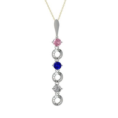 Pembe kuvars, lab safir ve beyaz zirkon 8 ayar beyaz altın kolye (40 cm gümüş rolo zincir)