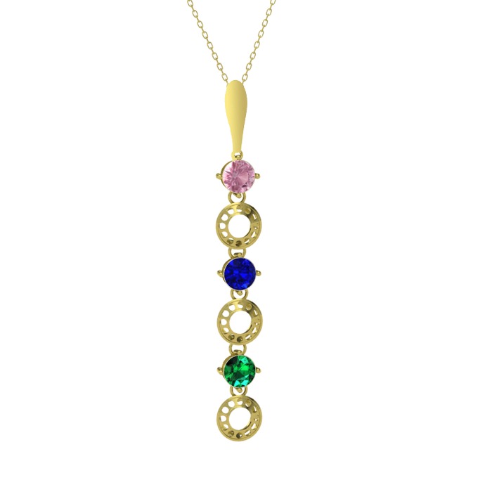 Pembe kuvars, lab safir ve yeşil kuvars 8 ayar altın kolye (40 cm altın rolo zincir)