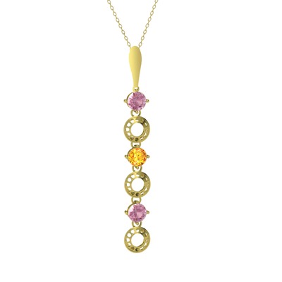 Pembe kuvars ve sitrin 925 ayar altın kaplama gümüş kolye (40 cm altın rolo zincir)