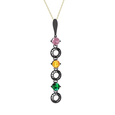 Pembe kuvars, sitrin ve yeşil kuvars 925 ayar siyah rodyum kaplama gümüş kolye (40 cm gümüş rolo zincir)