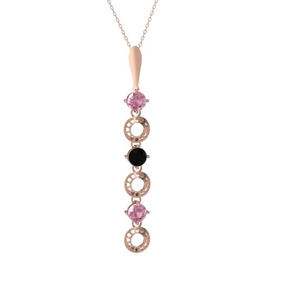 Pembe kuvars ve siyah zirkon 14 ayar rose altın kolye (40 cm gümüş rolo zincir)