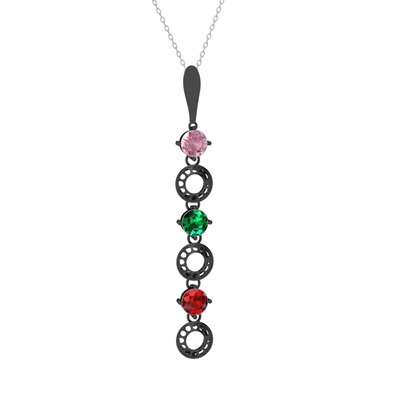 Pembe kuvars, yeşil kuvars ve garnet 925 ayar siyah rodyum kaplama gümüş kolye (40 cm beyaz altın rolo zincir)