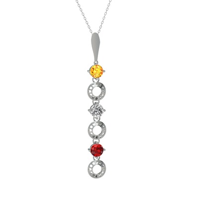 Sitrin, beyaz zirkon ve garnet 925 ayar gümüş kolye (40 cm beyaz altın rolo zincir)