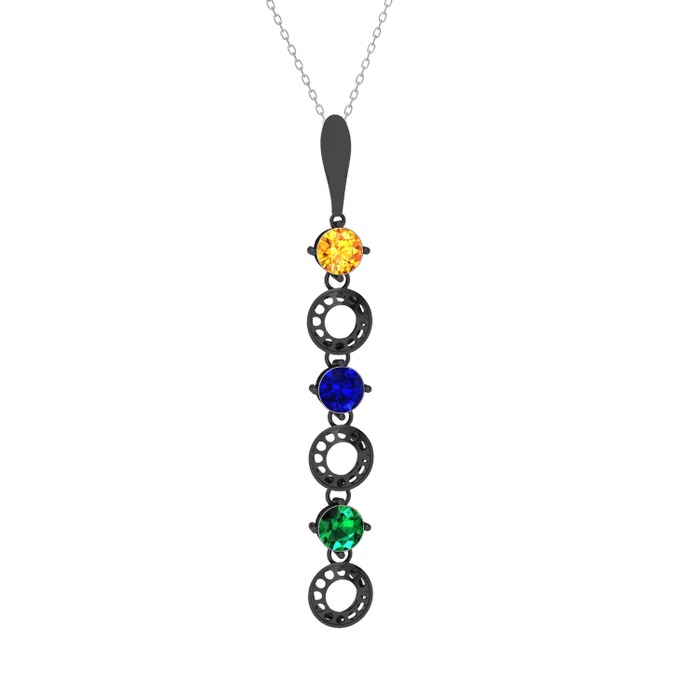 Sitrin, lab safir ve yeşil kuvars 925 ayar siyah rodyum kaplama gümüş kolye (40 cm beyaz altın rolo zincir)