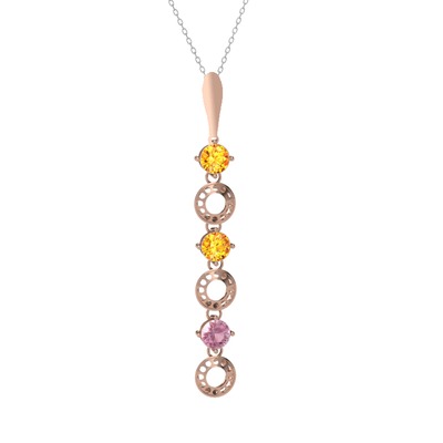Sitrin ve pembe kuvars 925 ayar rose altın kaplama gümüş kolye (40 cm gümüş rolo zincir)