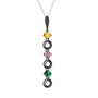 Sitrin, pembe kuvars ve yeşil kuvars 925 ayar siyah rodyum kaplama gümüş kolye (40 cm rose altın rolo zincir)