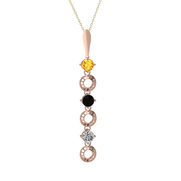 Sitrin, siyah zirkon ve beyaz zirkon 8 ayar rose altın kolye (40 cm gümüş rolo zincir)