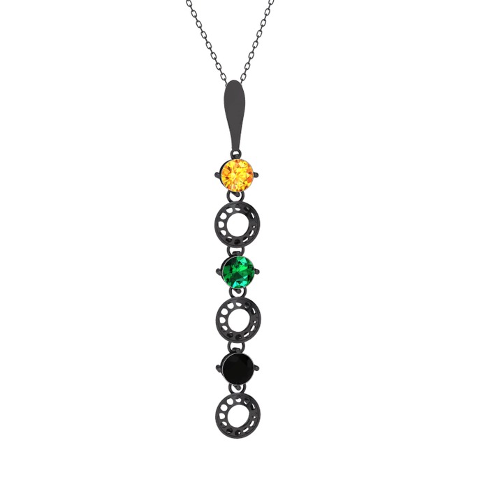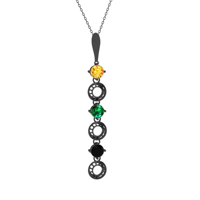 Sitrin, yeşil kuvars ve siyah zirkon 925 ayar siyah rodyum kaplama gümüş kolye (40 cm gümüş rolo zincir)