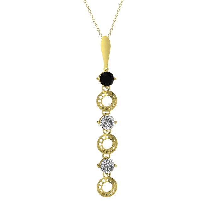 Siyah zirkon ve beyaz zirkon 925 ayar altın kaplama gümüş kolye (40 cm altın rolo zincir)