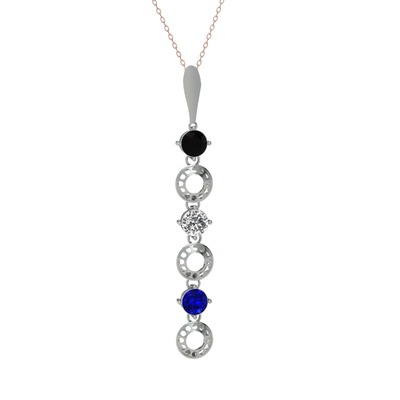 Siyah zirkon, beyaz zirkon ve lab safir 14 ayar beyaz altın kolye (40 cm rose altın rolo zincir)