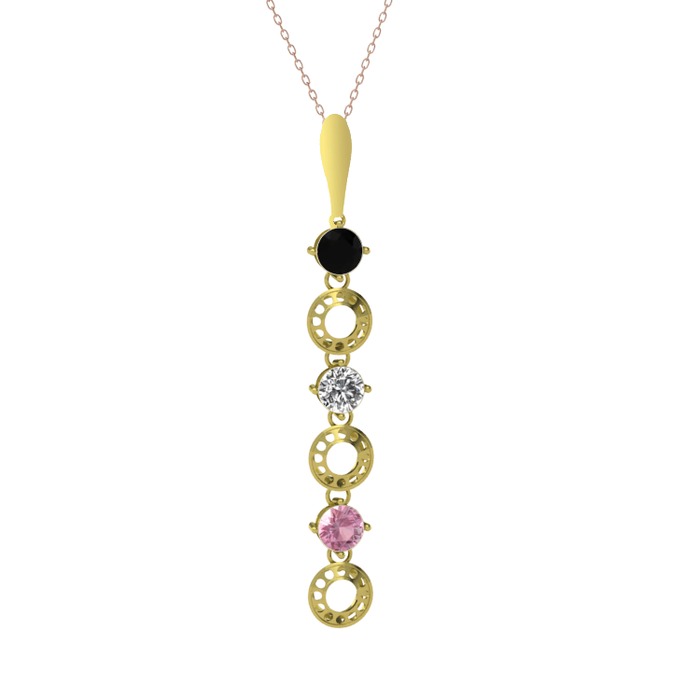 Siyah zirkon, beyaz zirkon ve pembe kuvars 925 ayar altın kaplama gümüş kolye (40 cm gümüş rolo zincir)