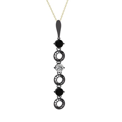 Siyah zirkon ve beyaz zirkon 925 ayar siyah rodyum kaplama gümüş kolye (40 cm altın rolo zincir)