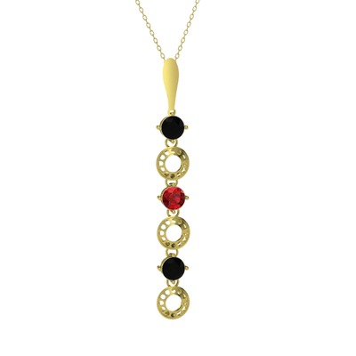 Siyah zirkon ve garnet 8 ayar altın kolye (40 cm altın rolo zincir)