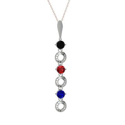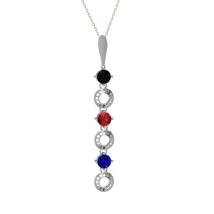 Siyah zirkon, garnet ve lab safir 14 ayar beyaz altın kolye (40 cm rose altın rolo zincir)