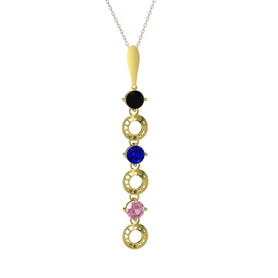 Siyah zirkon, lab safir ve pembe kuvars 925 ayar altın kaplama gümüş kolye (40 cm rose altın rolo zincir)
