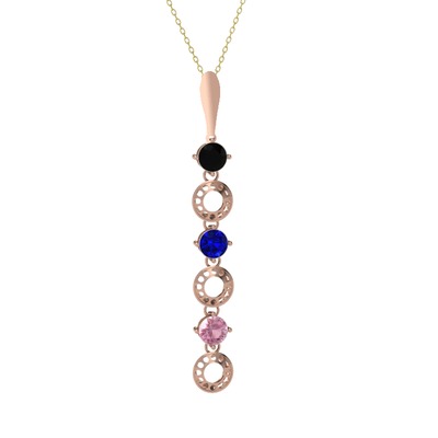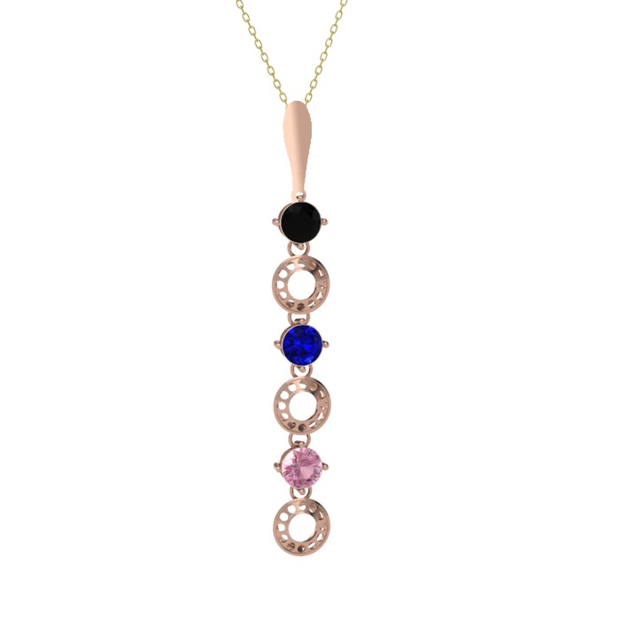 Siyah zirkon, lab safir ve pembe kuvars 925 ayar rose altın kaplama gümüş kolye (40 cm altın rolo zincir)