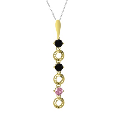 Siyah zirkon ve pembe kuvars 14 ayar altın kolye (40 cm beyaz altın rolo zincir)