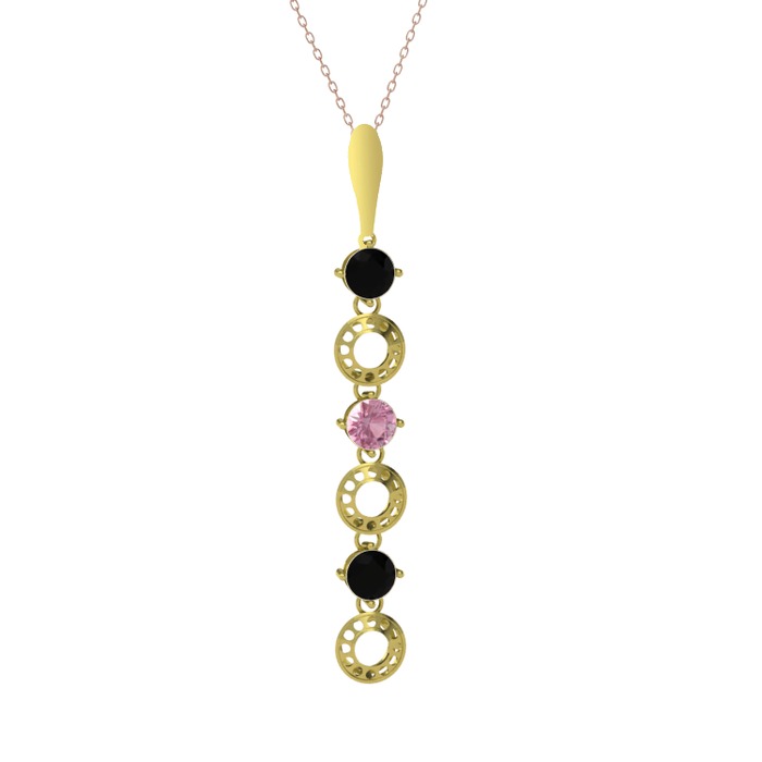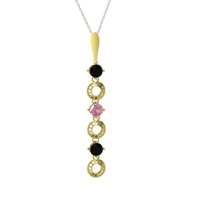 Siyah zirkon ve pembe kuvars 14 ayar altın kolye (40 cm gümüş rolo zincir)