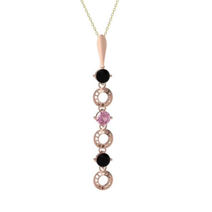 Siyah zirkon ve pembe kuvars 8 ayar rose altın kolye (40 cm gümüş rolo zincir)