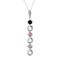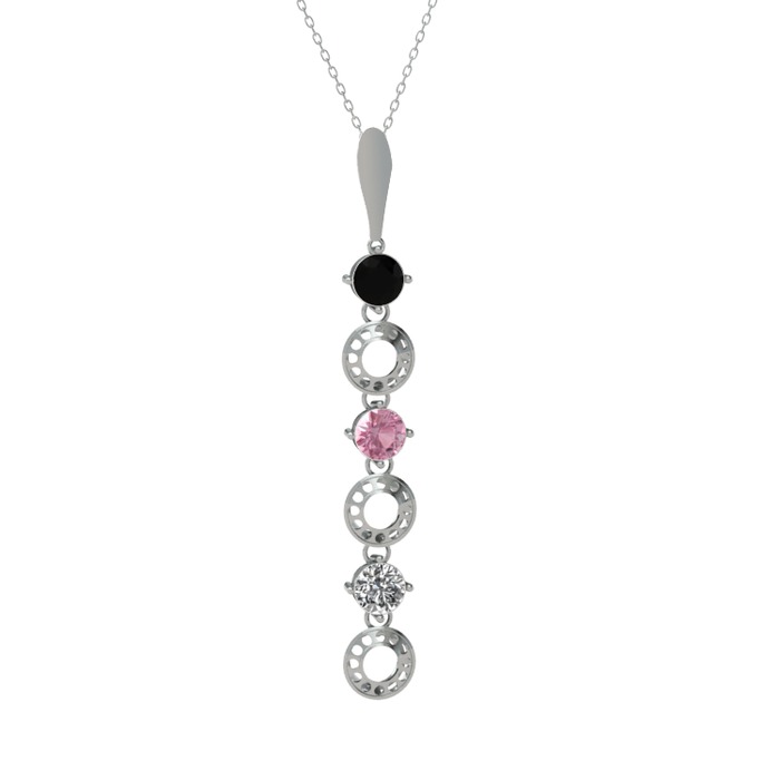 Siyah zirkon, pembe kuvars ve beyaz zirkon 925 ayar gümüş kolye (40 cm beyaz altın rolo zincir)
