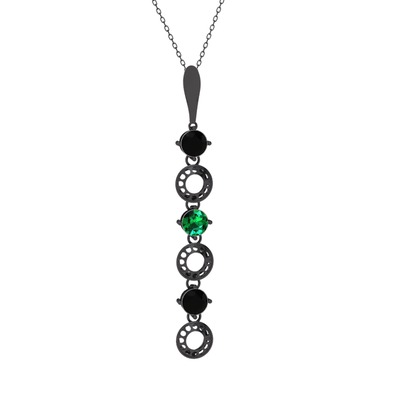 Siyah zirkon ve yeşil kuvars 925 ayar siyah rodyum kaplama gümüş kolye (40 cm gümüş rolo zincir)