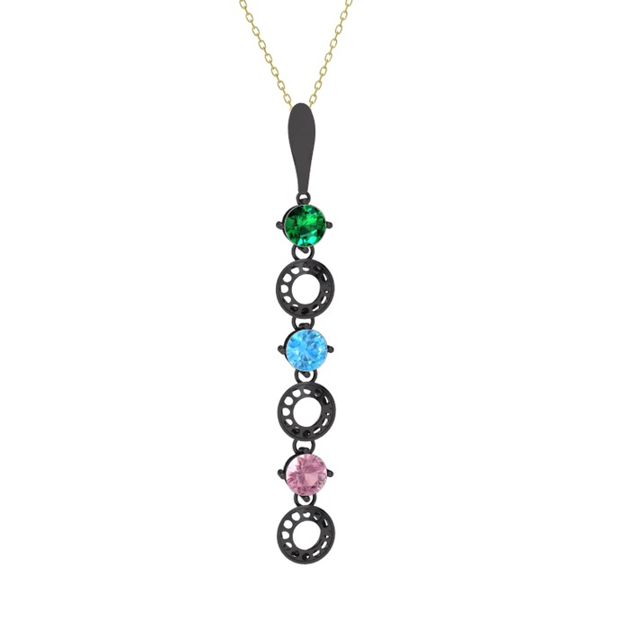 Yeşil kuvars, akuamarin ve pembe kuvars 925 ayar siyah rodyum kaplama gümüş kolye (40 cm gümüş rolo zincir)