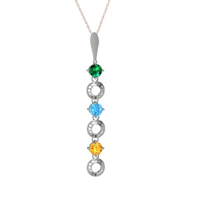 Yeşil kuvars, akuamarin ve sitrin 925 ayar gümüş kolye (40 cm rose altın rolo zincir)