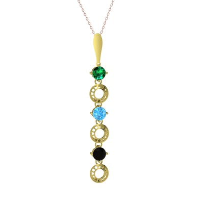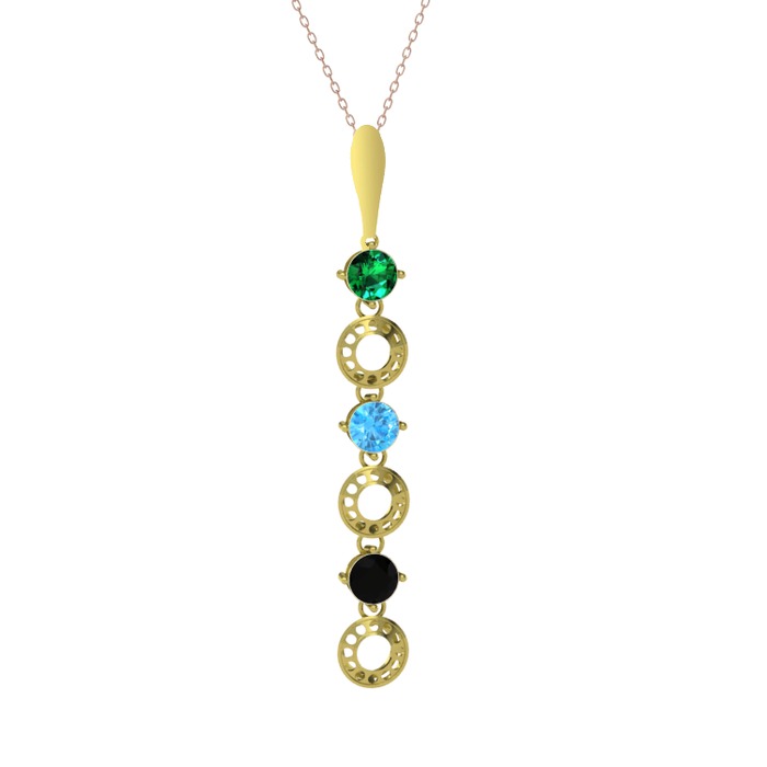 Yeşil kuvars, akuamarin ve siyah zirkon 14 ayar altın kolye (40 cm rose altın rolo zincir)