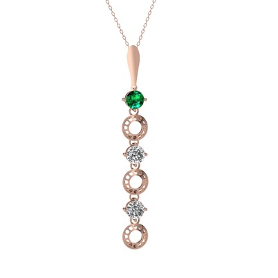 Yeşil kuvars ve beyaz zirkon 14 ayar rose altın kolye (40 cm gümüş rolo zincir)