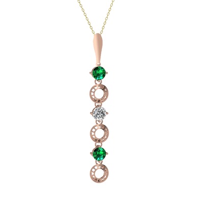 Yeşil kuvars ve beyaz zirkon 8 ayar rose altın kolye (40 cm gümüş rolo zincir)