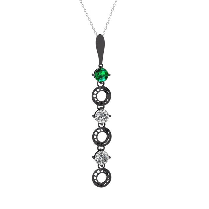 Yeşil kuvars ve beyaz zirkon 925 ayar siyah rodyum kaplama gümüş kolye (40 cm beyaz altın rolo zincir)