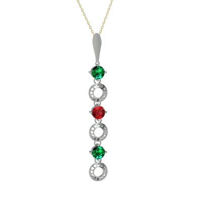 Yeşil kuvars ve garnet 8 ayar beyaz altın kolye (40 cm altın rolo zincir)
