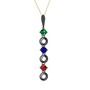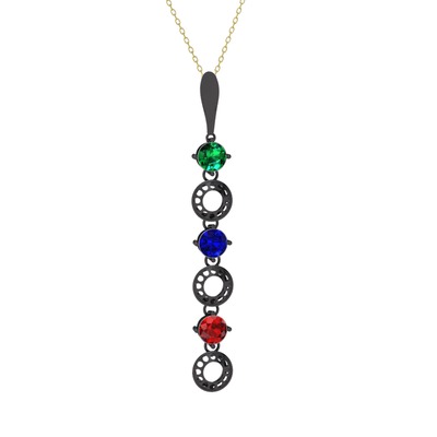 Yeşil kuvars, lab safir ve garnet 925 ayar siyah rodyum kaplama gümüş kolye (40 cm altın rolo zincir)
