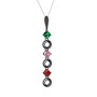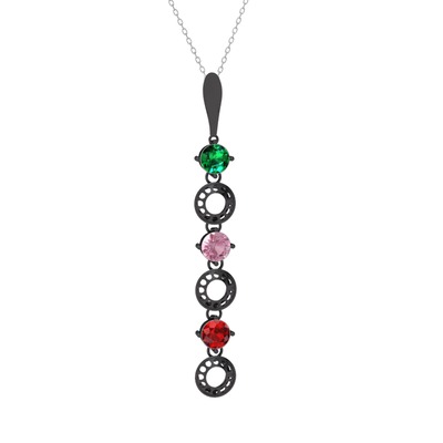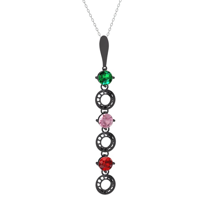 Yeşil kuvars, pembe kuvars ve garnet 925 ayar siyah rodyum kaplama gümüş kolye (40 cm beyaz altın rolo zincir)