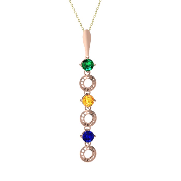 Yeşil kuvars, sitrin ve lab safir 8 ayar rose altın kolye (40 cm altın rolo zincir)