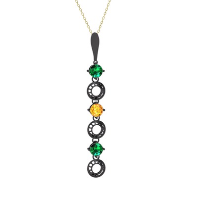 Yeşil kuvars ve sitrin 925 ayar siyah rodyum kaplama gümüş kolye (40 cm altın rolo zincir)